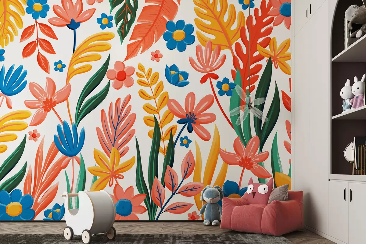Peintures murales Motif lumineux avec des fleurs et des feuilles Nr. w05003