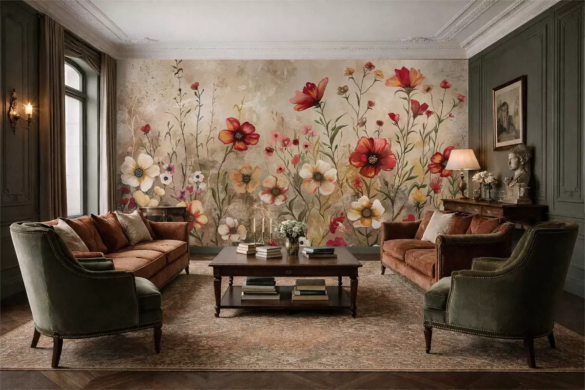 Peintures murales Composition florale avec fond texturé dans des tons chauds Nr. w05016