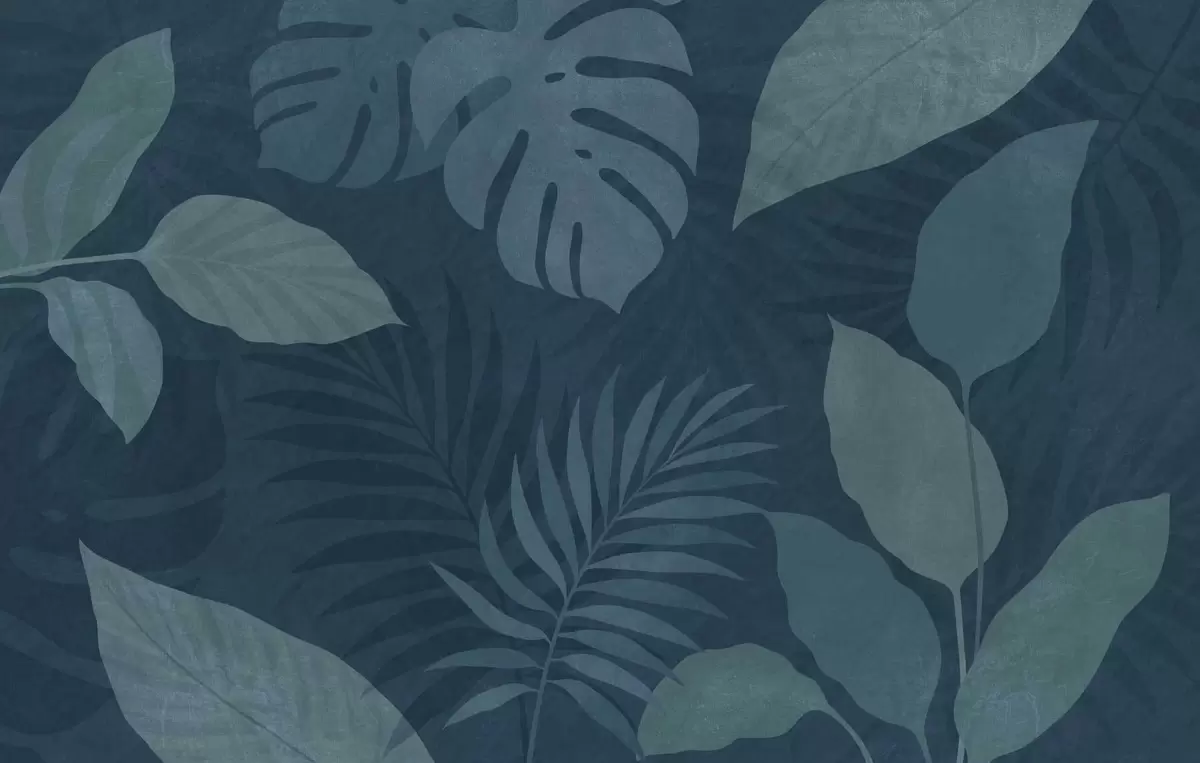 Peintures murales feuilles tropicales texturées sur fond bleu foncé Nr. w05063v3