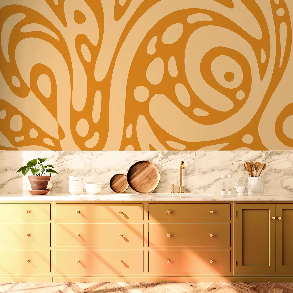 Peintures murales Motif abstrait avec des formes ocres chaudes Nr. w05071v1