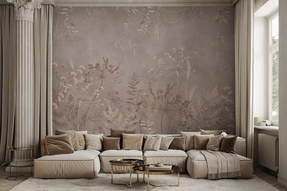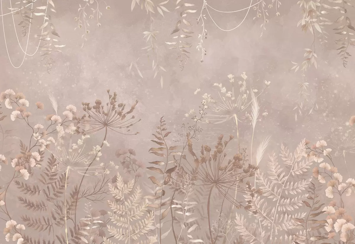 Peintures murales Motif botanique beige clair avec des fleurs sauvages Nr. w05092v2