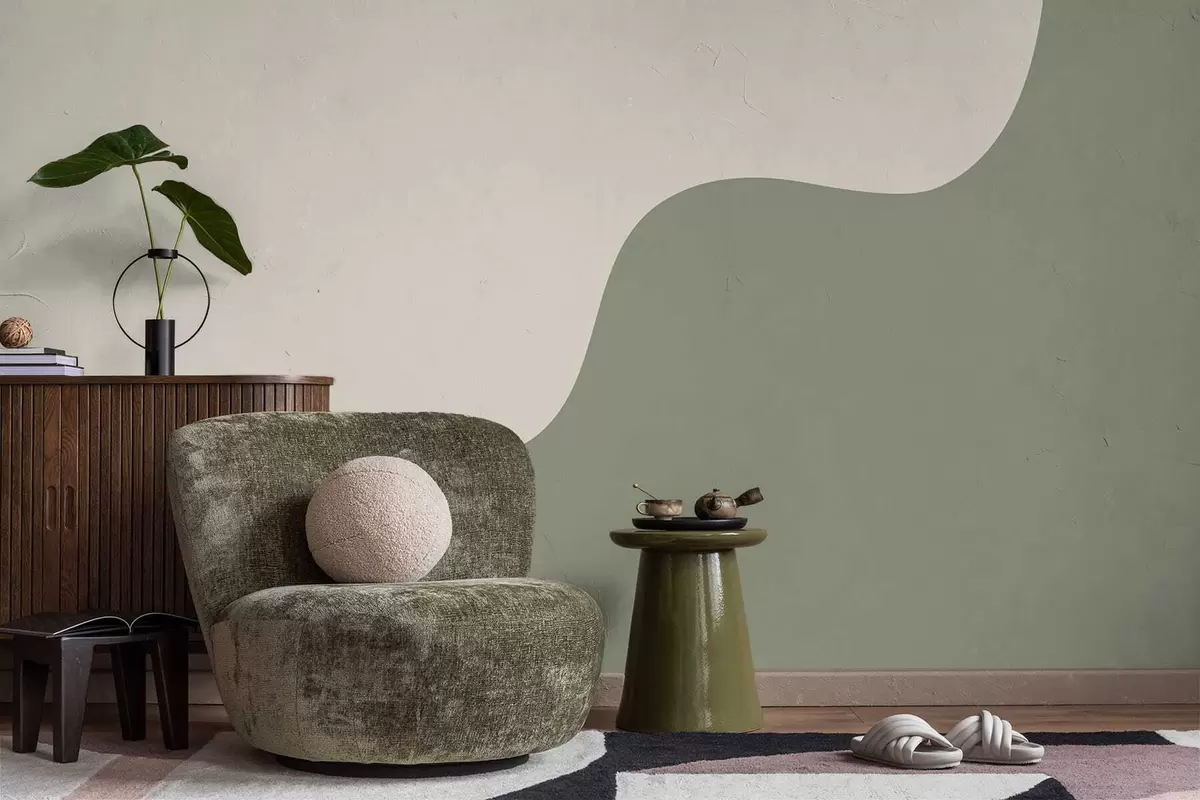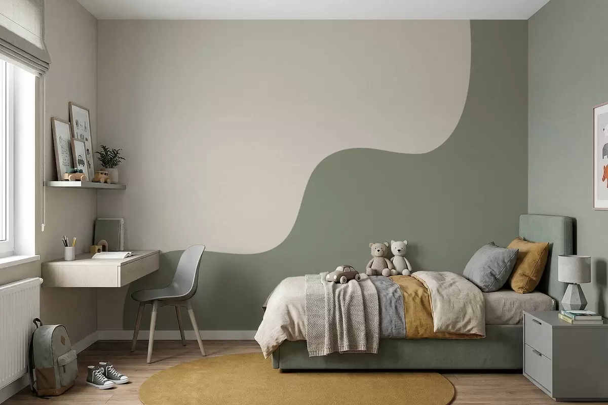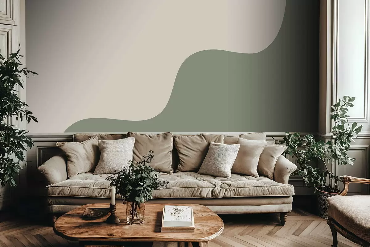 Peintures murales Formes abstraites douces dans des tons beige clair et vert Nr. w05097