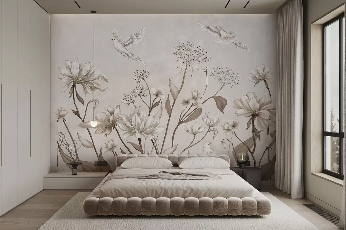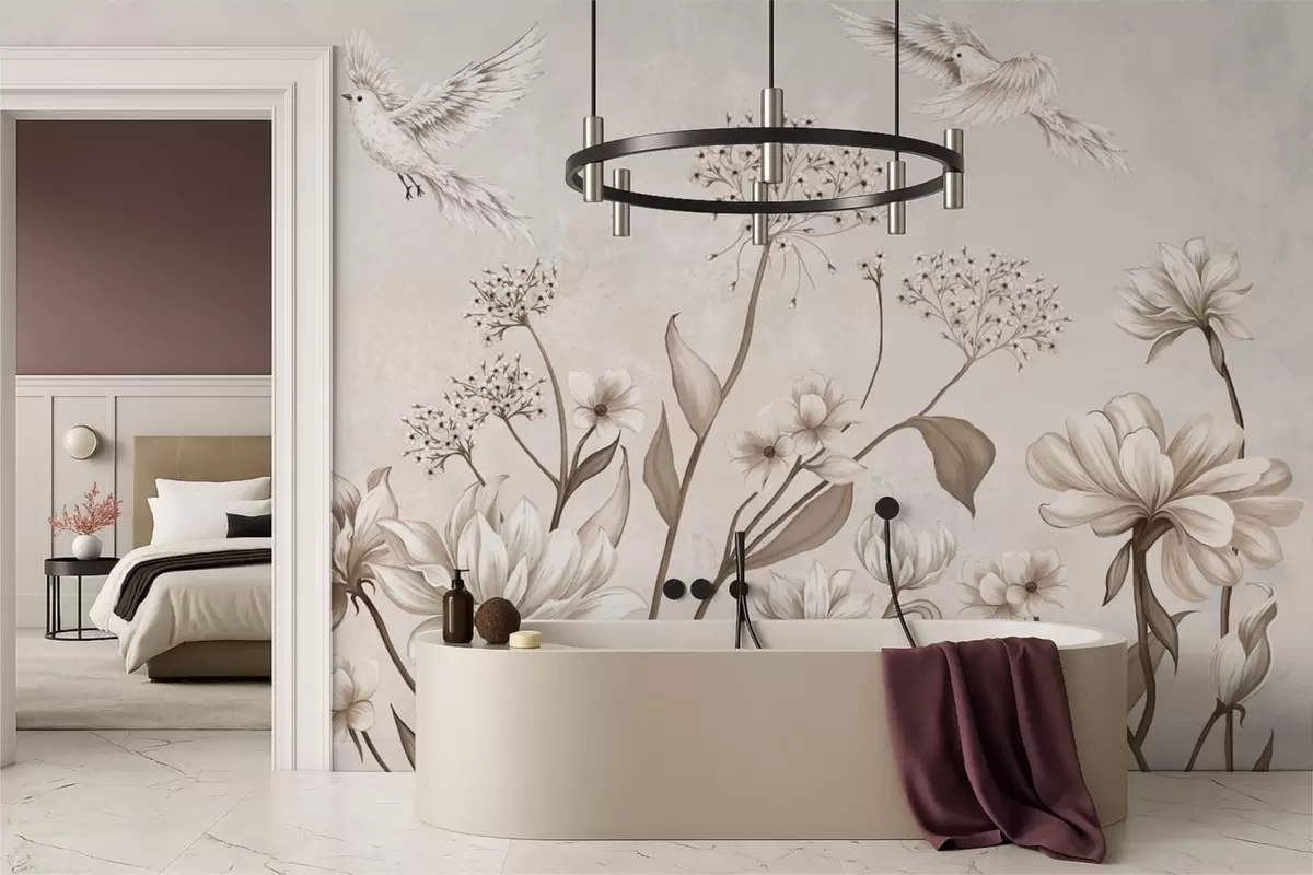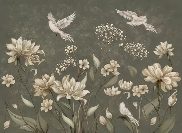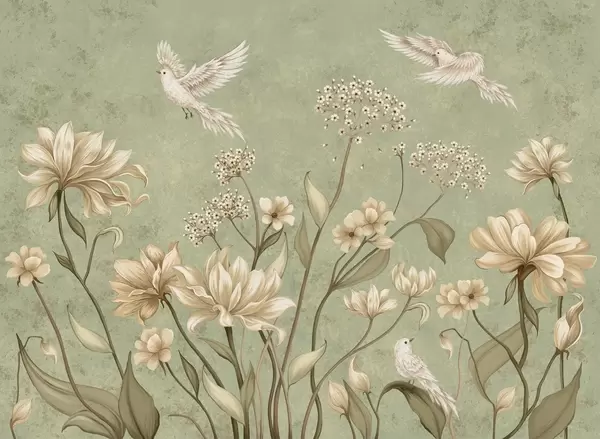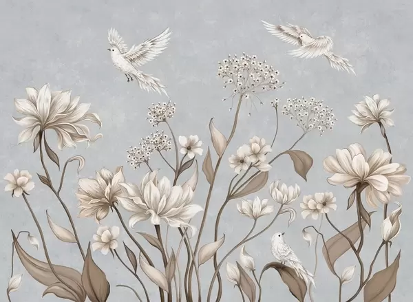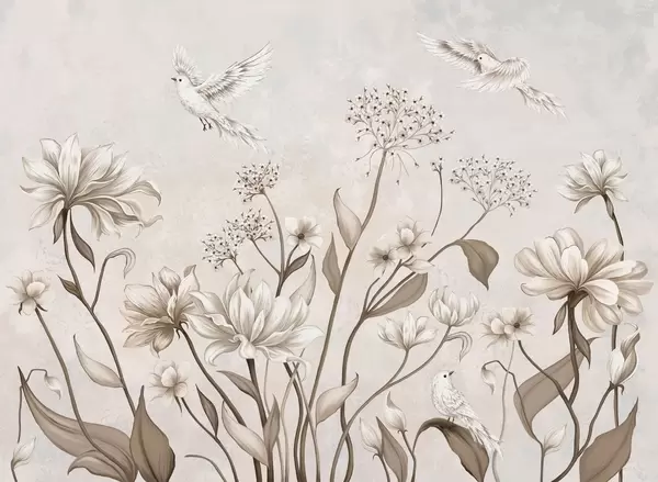 Peintures murales Des fleurs et des oiseaux délicats sur un fond doux Nr. w05118