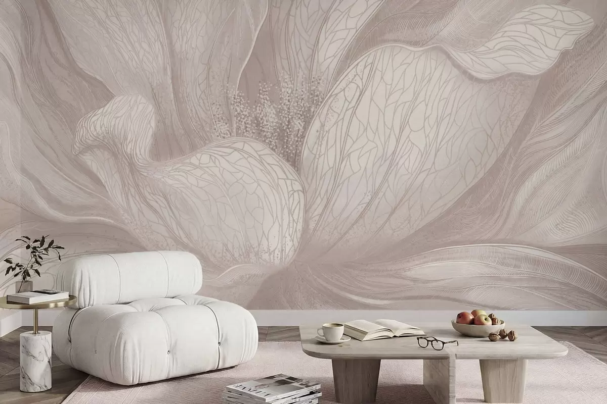 Peintures murales Fleur abstraite dans des tons beige clair Nr. w05119