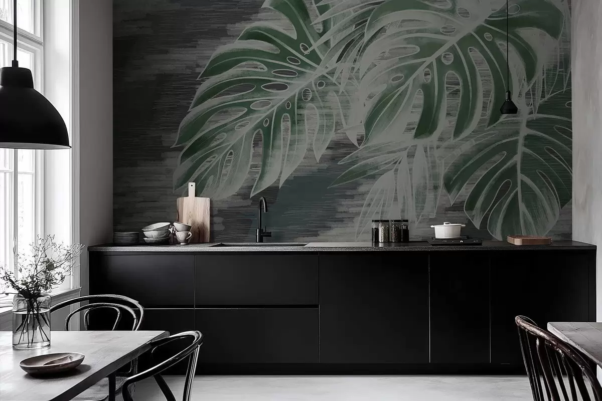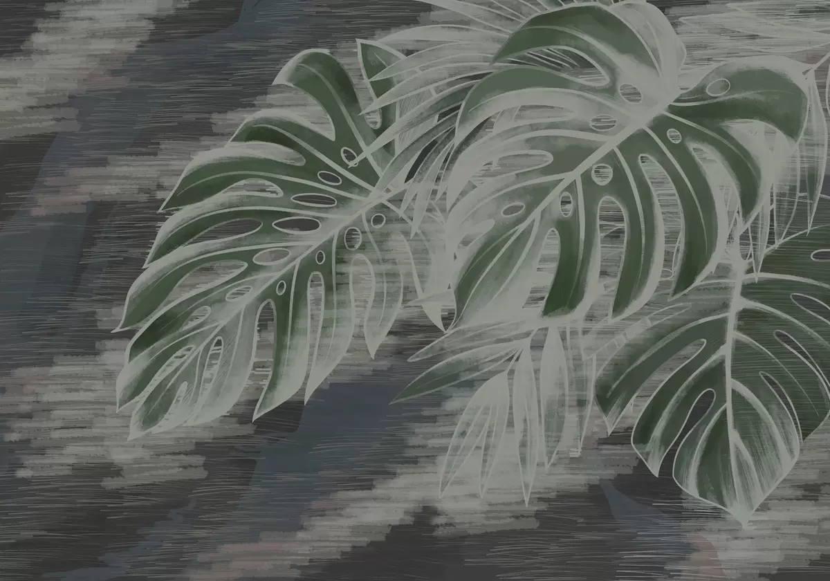 Peintures murales Feuilles vert foncé sur fond sombre texturé Nr. w05130v4
