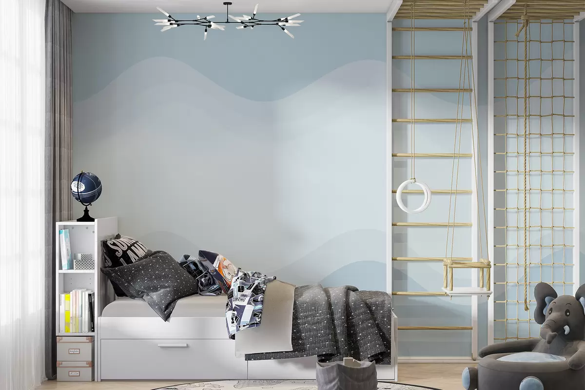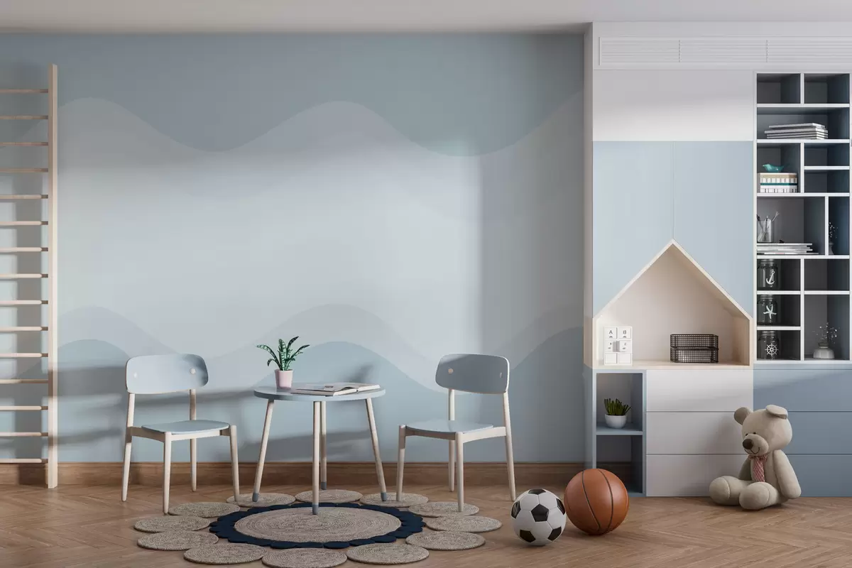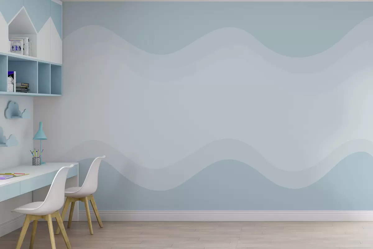 Peintures murales Vagues abstraites dans une palette bleu clair Nr. w05132v2