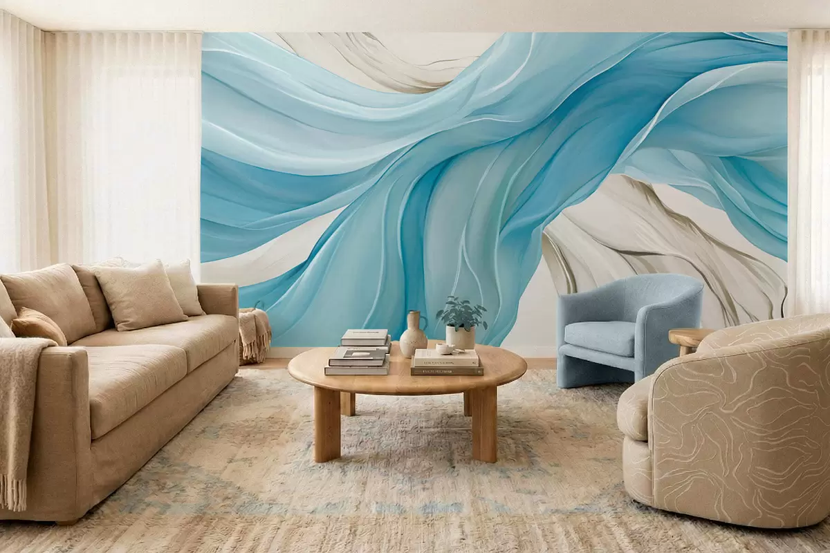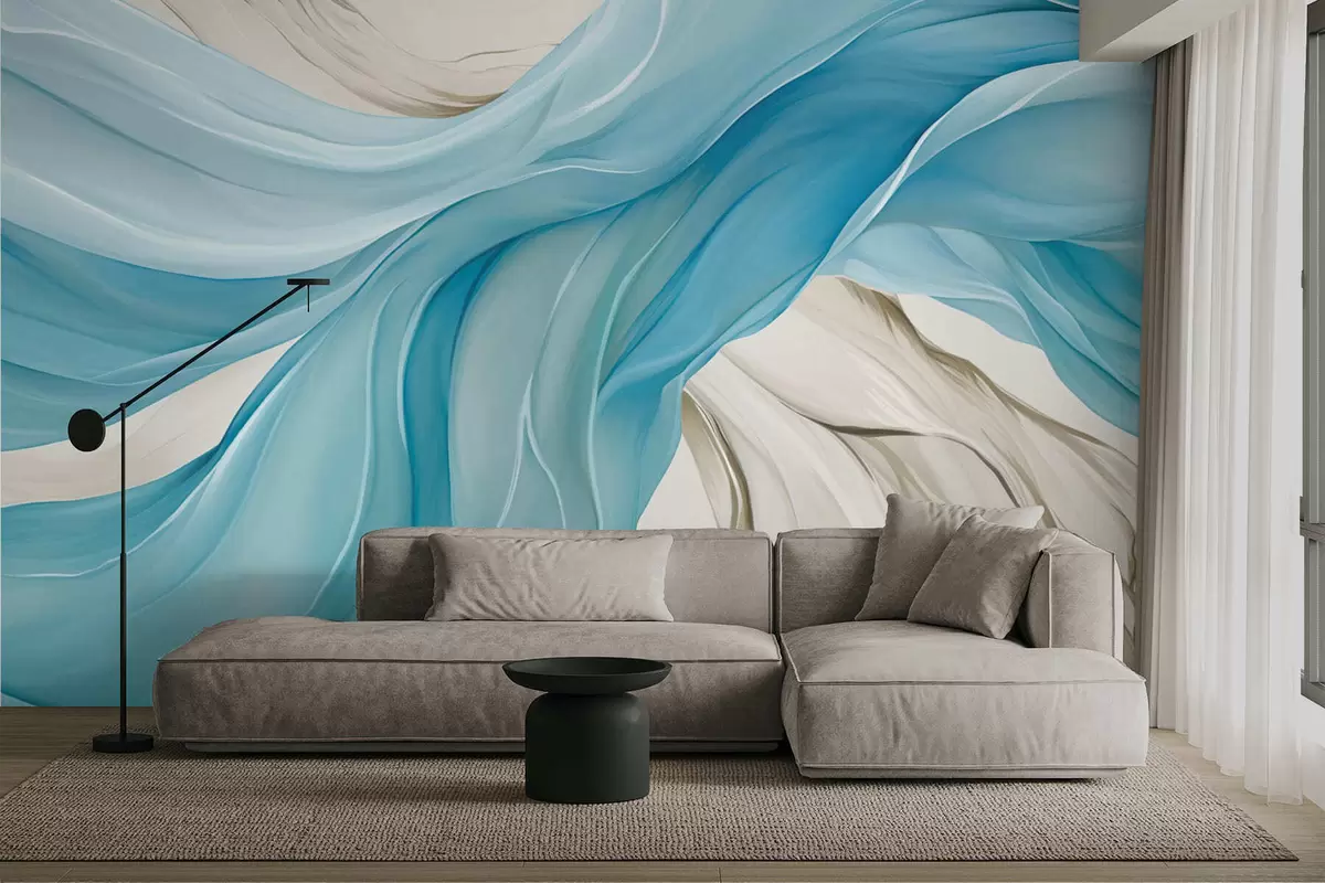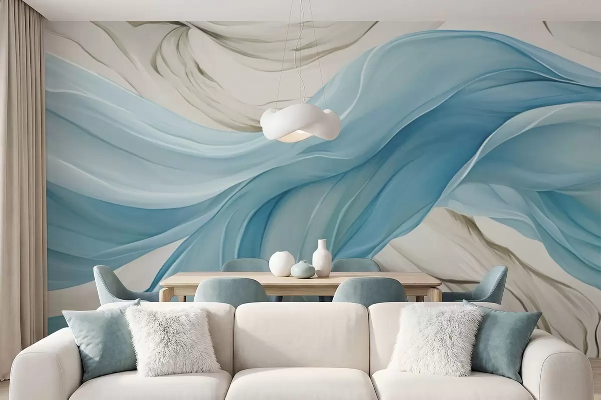 Peintures murales Vagues de tissu bleu fluide Nr. w05152v1