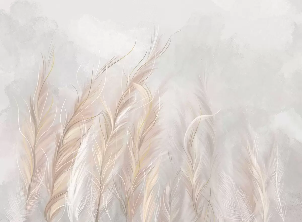 Peintures murales Plumes douces et abstraites dans des tons neutres clairs Nr. w05153
