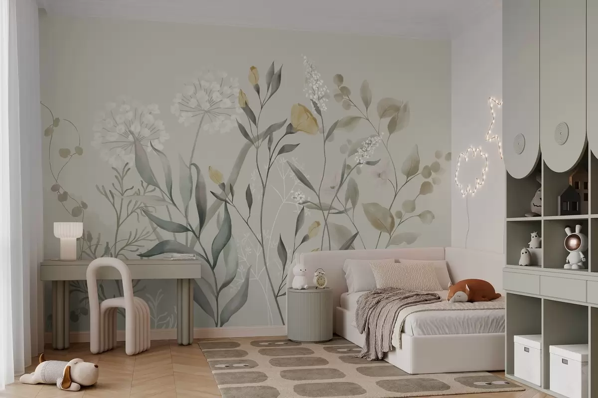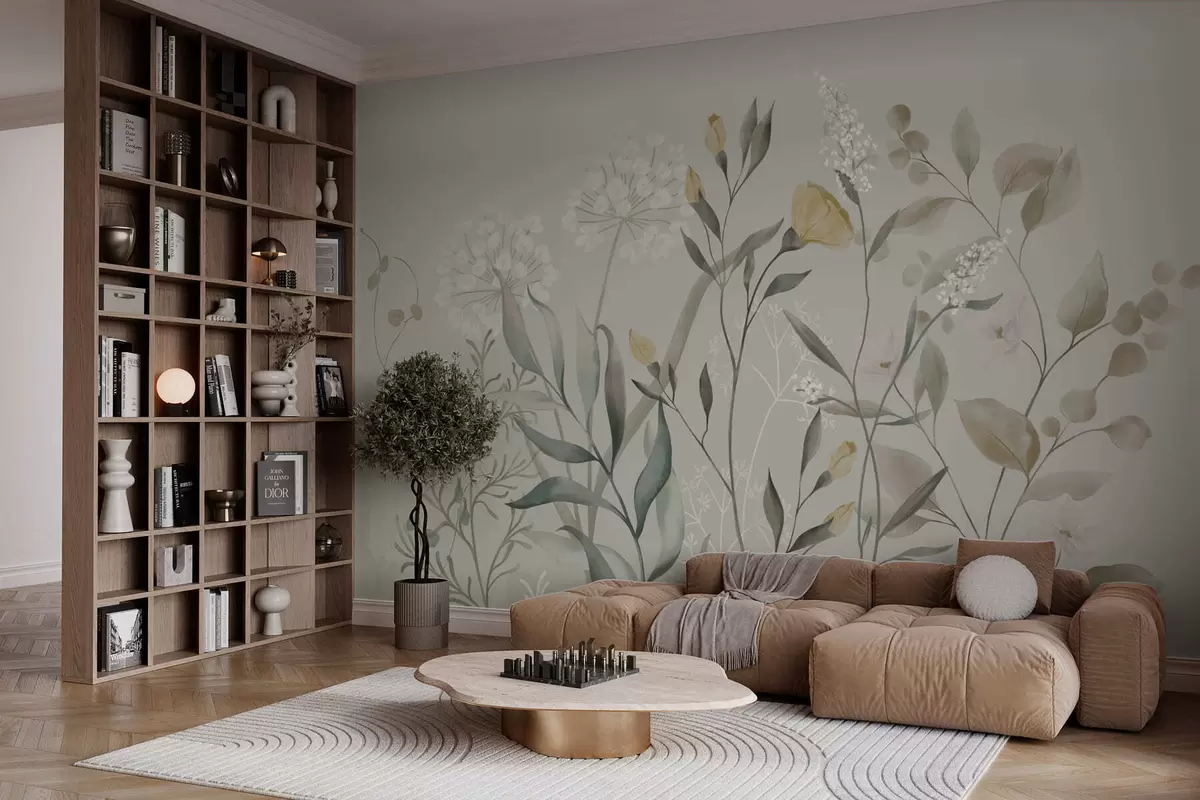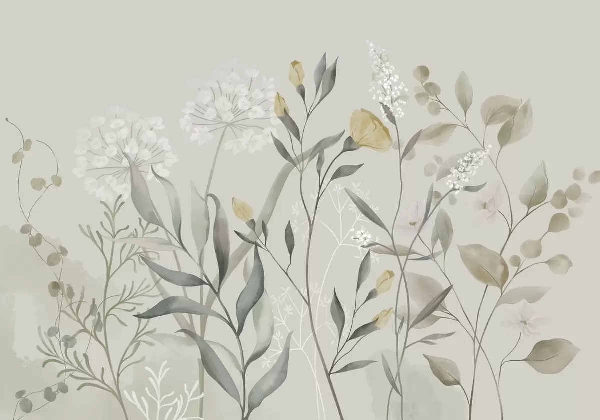 Peintures murales Plantes aux accents jaunes sur fond clair Nr. w05154v1