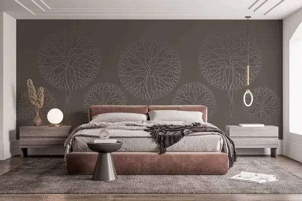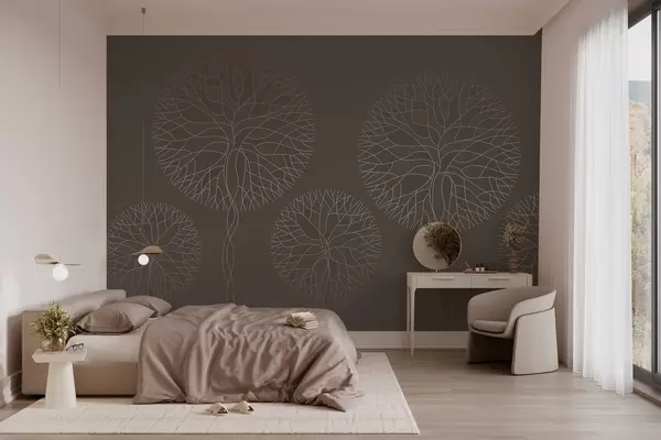 Peintures murales Arbres fantastiques linéaires aux couronnes luxuriantes dans d'élégants tons moka Nr. w05213v1