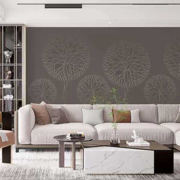 Peintures murales Arbres fantastiques linéaires aux couronnes luxuriantes dans d'élégants tons moka Nr. w05213v1