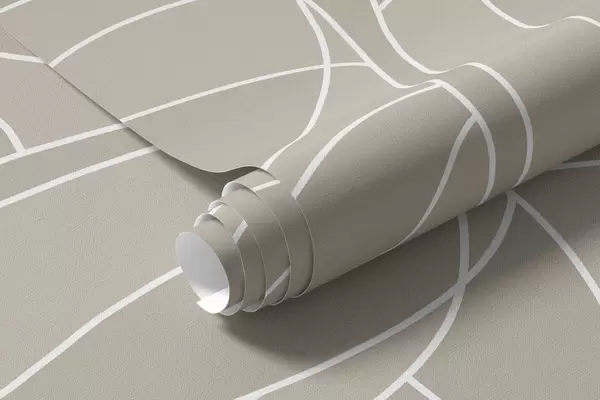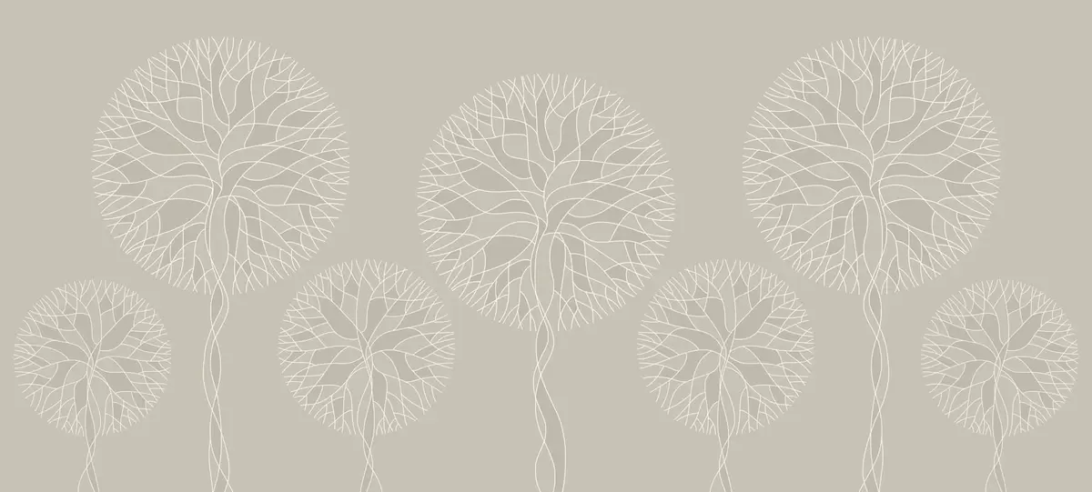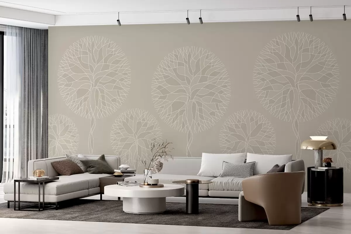 Peintures murales Arbres fantaisistes linéaires aux couronnes luxuriantes dans les tons beiges Nr. w05213v3