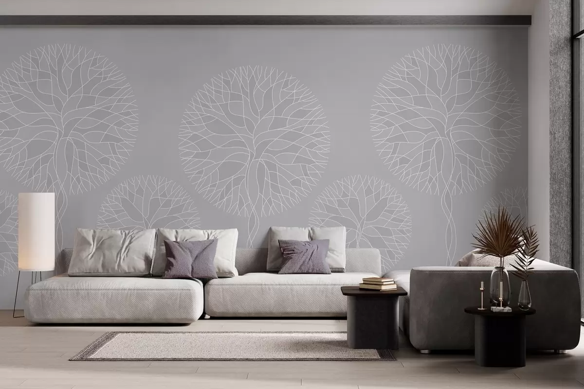 Peintures murales Arbres fantaisistes aux couronnes luxuriantes dans des tons gris clair Nr. w05213v4