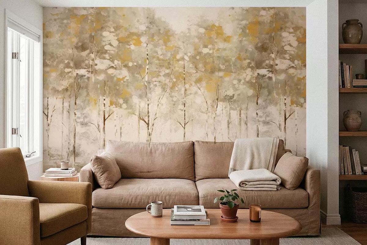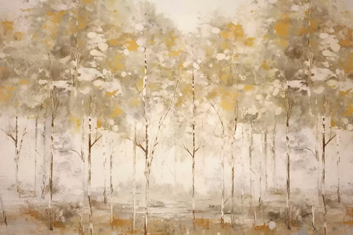 Peintures murales Forêt stylisée avec des arbres élancés dans des tons chauds Nr. w05221