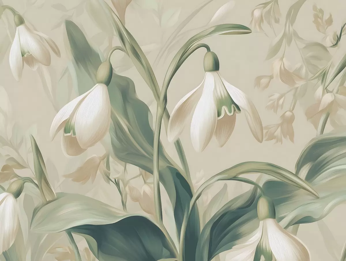 Peintures murales perce-neige en fleurs sur fond beige Nr. w05234
