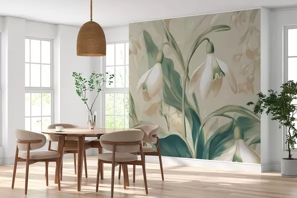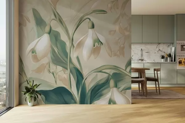 Peintures murales perce-neige en fleurs sur fond beige Nr. w05234