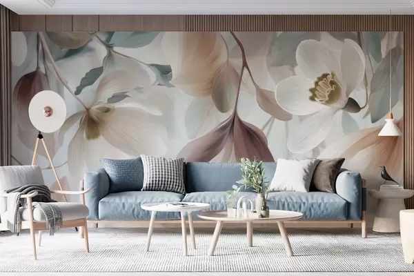 Peintures murales une composition délicate de fleurs et de feuilles aux tons pastel Nr. w05240