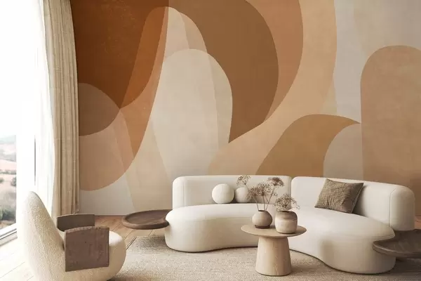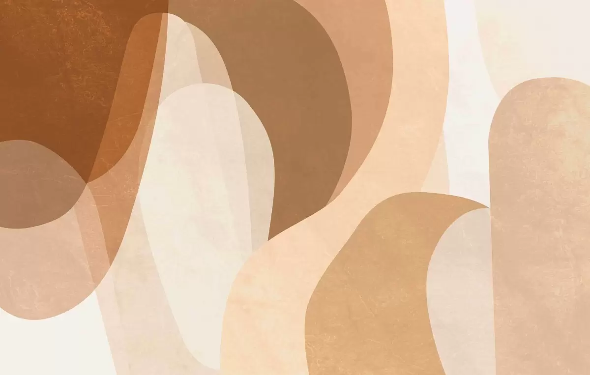 Peintures murales des courbes abstraites dans des tons marron, beige et auburn Nr. w05387