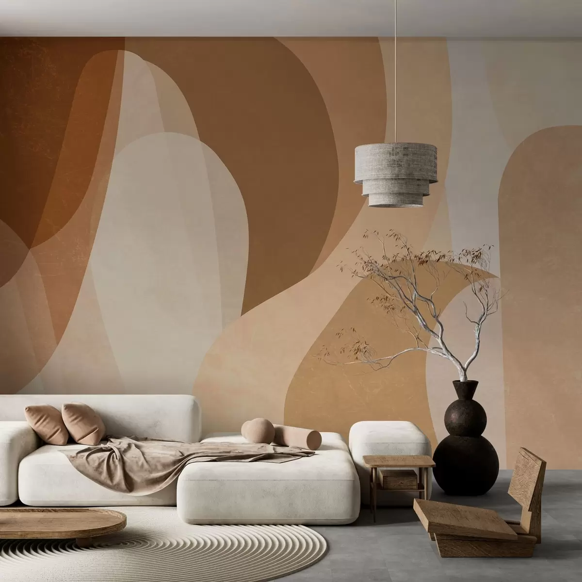 Peintures murales des courbes abstraites dans des tons marron, beige et auburn Nr. w05387