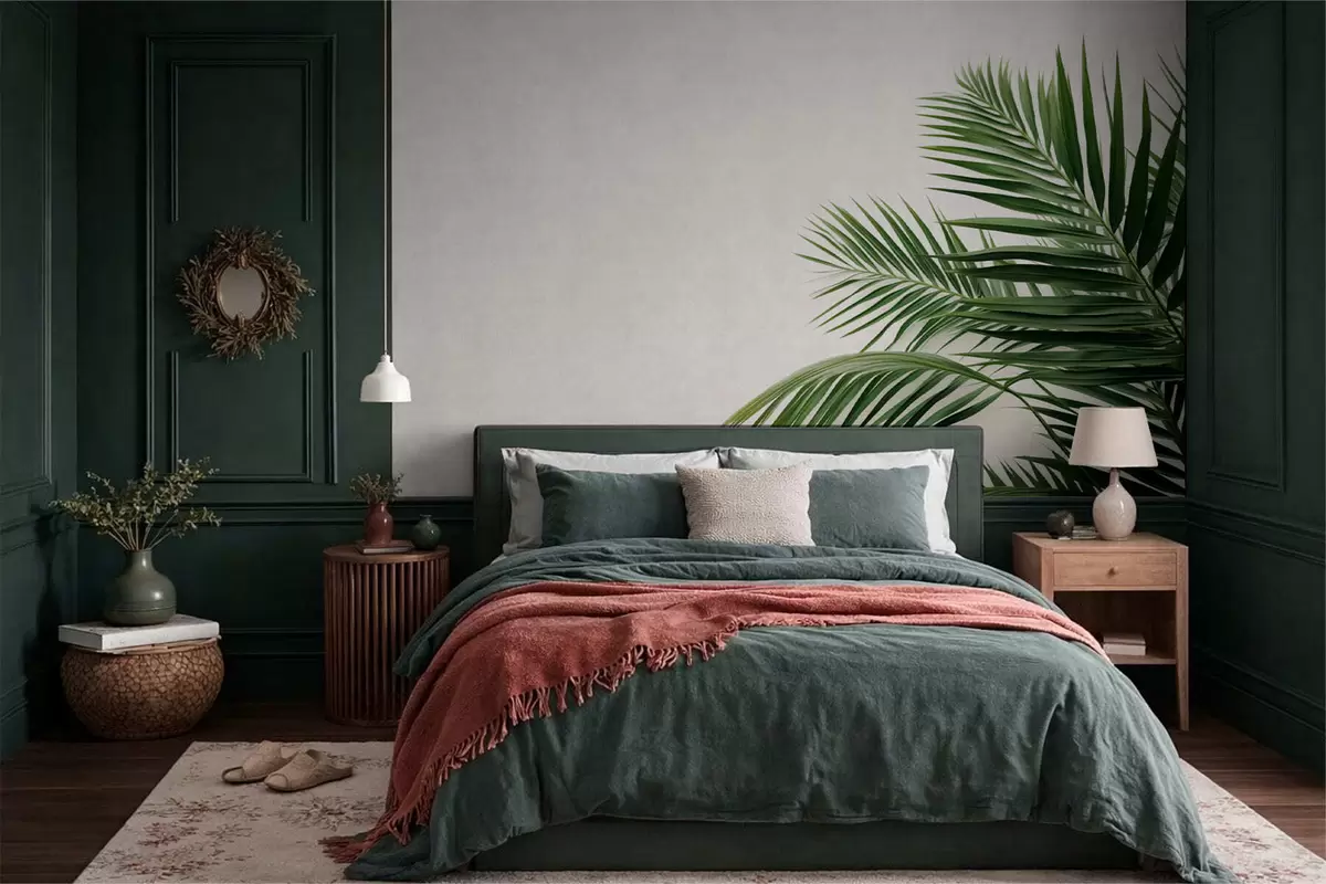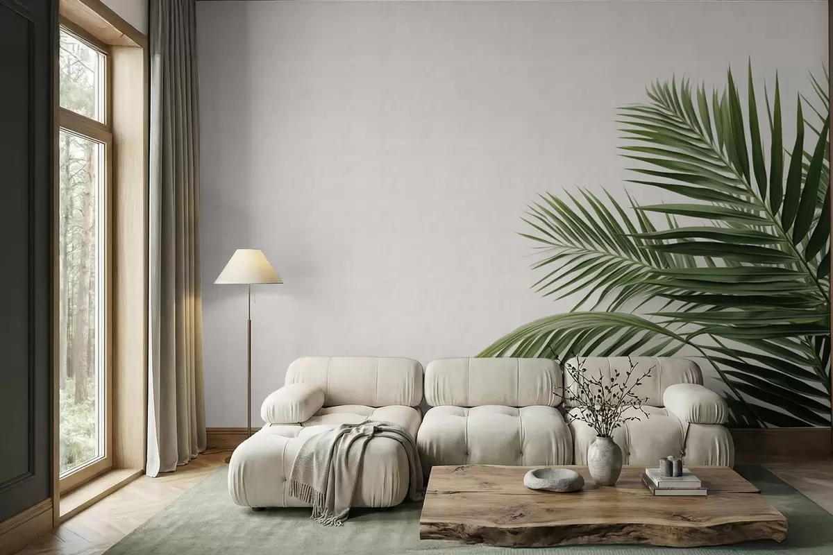 Peintures murales Des feuilles de palmier vertes sur un fond clair Nr. w05391