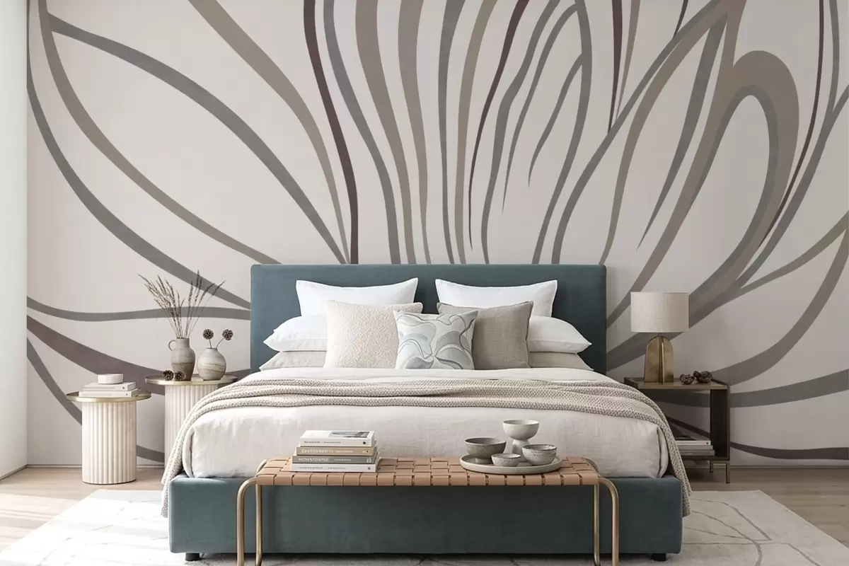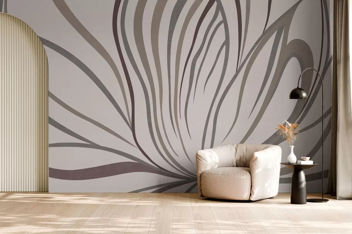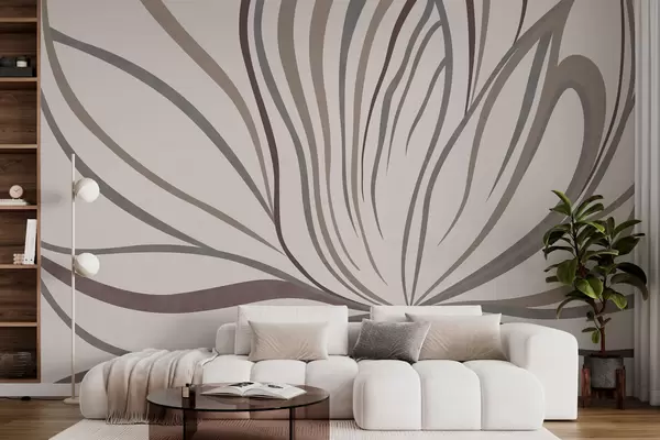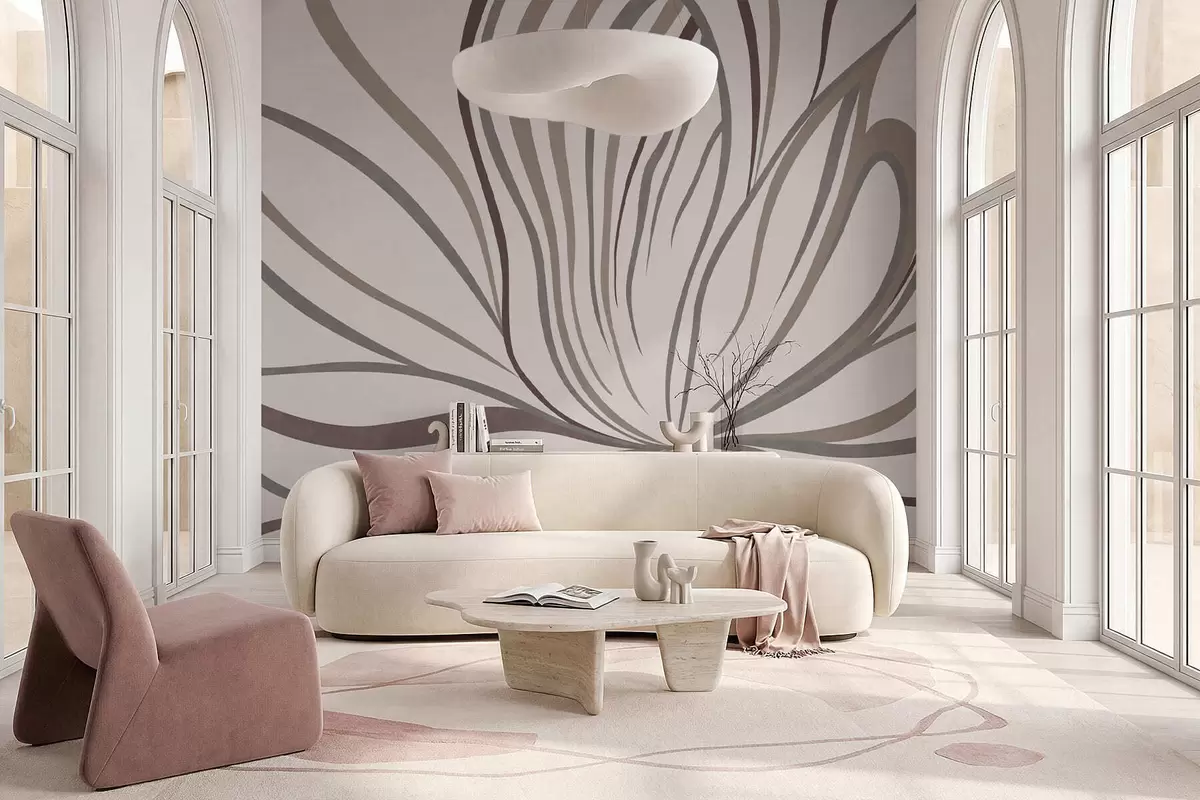 Peintures murales Fleur abstraite avec des lignes dans des tons gris et roses Nr. w05392