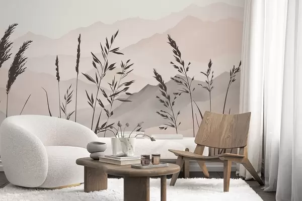 Peintures murales Les silhouettes de l'herbe sur fond de montagnes Nr. w05501