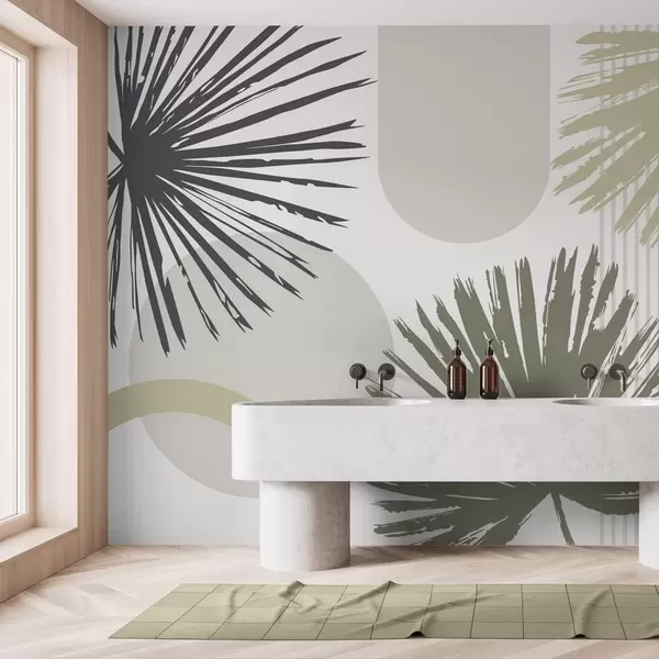 Peintures murales Abstraction avec des silhouettes végétales et géométriques Nr. w05505v2