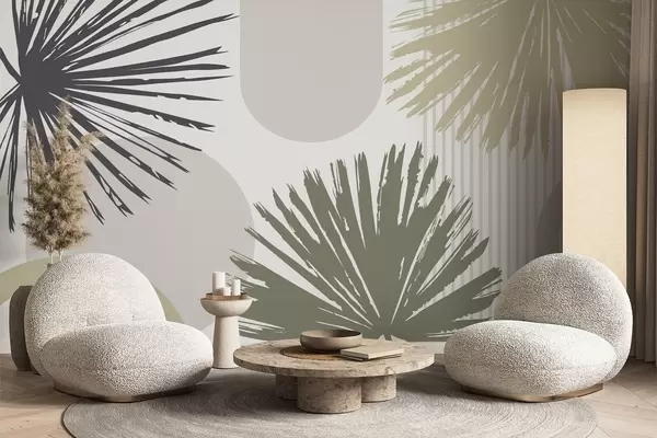 Peintures murales Abstraction avec des silhouettes végétales et géométriques Nr. w05505v2