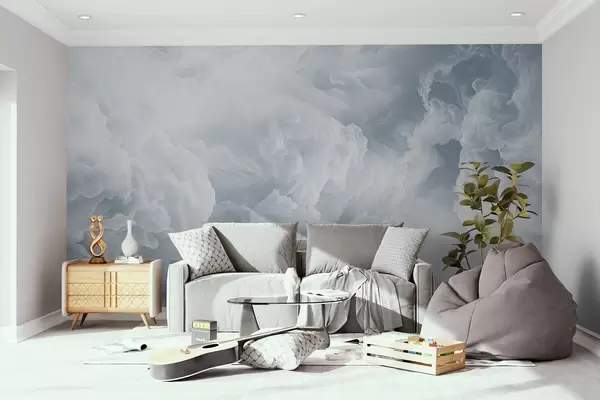 Peintures murales Nuages aériens blancs et bleus flottant dans le ciel Nr. w08495