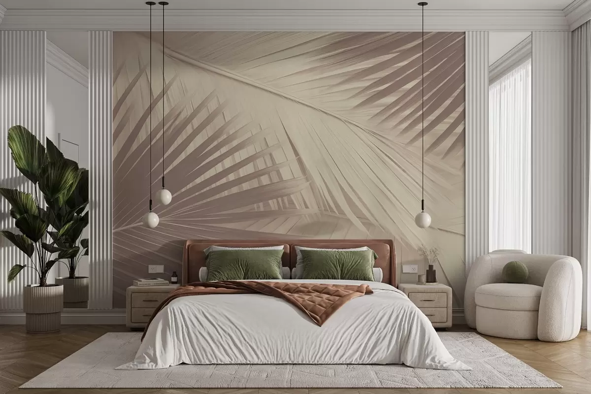 Peintures murales Feuilles de palmier abstraites dans des tons doux Nr. w08677