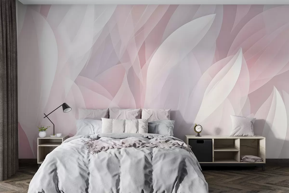 Peintures murales Motif abstrait présentant des formes douces en forme de pétales dans des tons de rose et de blanc, créant un effet de superposition Nr. w08774