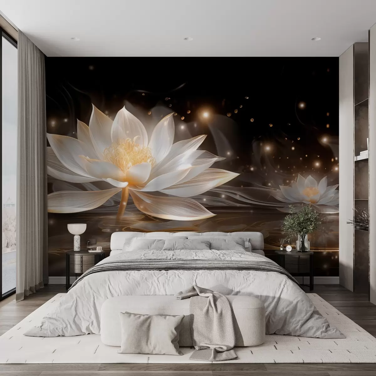 Peintures murales Nénuphars blancs élégants sur l'eau sombre Nr. w09021