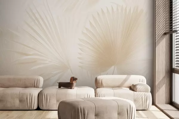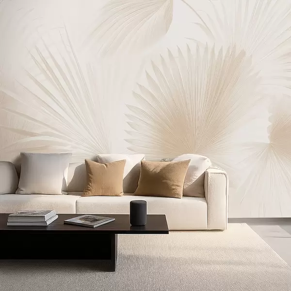Peintures murales Éventails de feuilles tropicales sur fond clair Nr. w09084v1