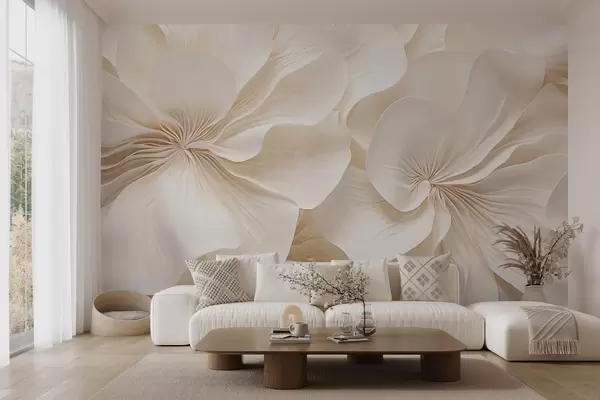 Peintures murales Gros plan sur des fleurs à la texture crémeuse et aux pétales délicats et fluides, créant une composition florale douce, élégante et texturée Nr. w09346