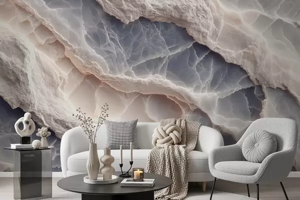 Peintures murales Abstraction élégante dans le style des couches de marbre et des minéraux dans des tons bleu-beige Nr. w09408