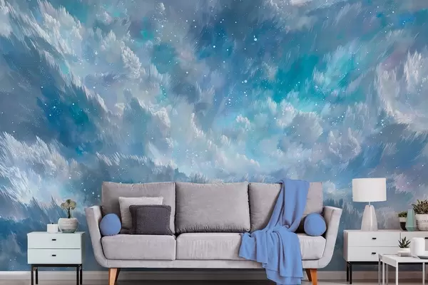 Peintures murales Nuages abstraits célestes dans une palette pastel fraîche Nr. w09459
