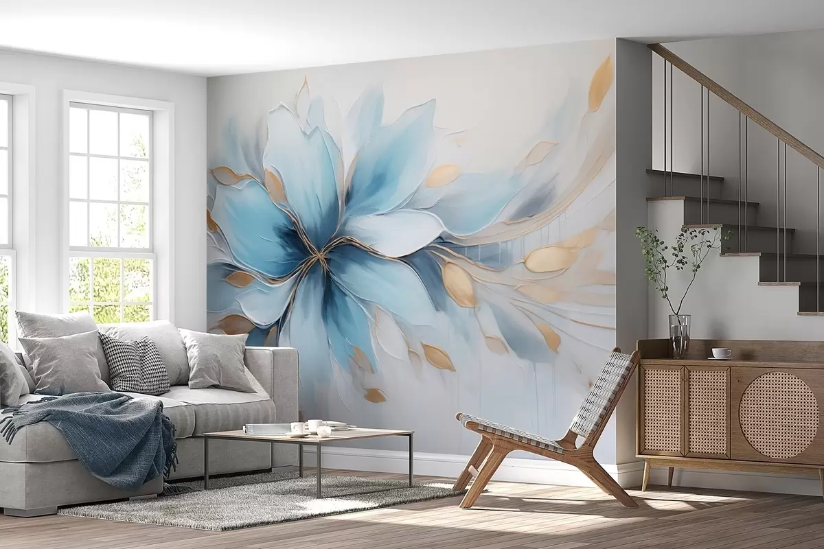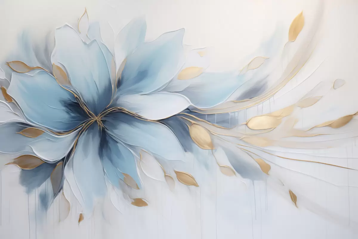 Peintures murales Fleur bleue abstraite symbolisant le calme, avec des feuilles Nr. w09500