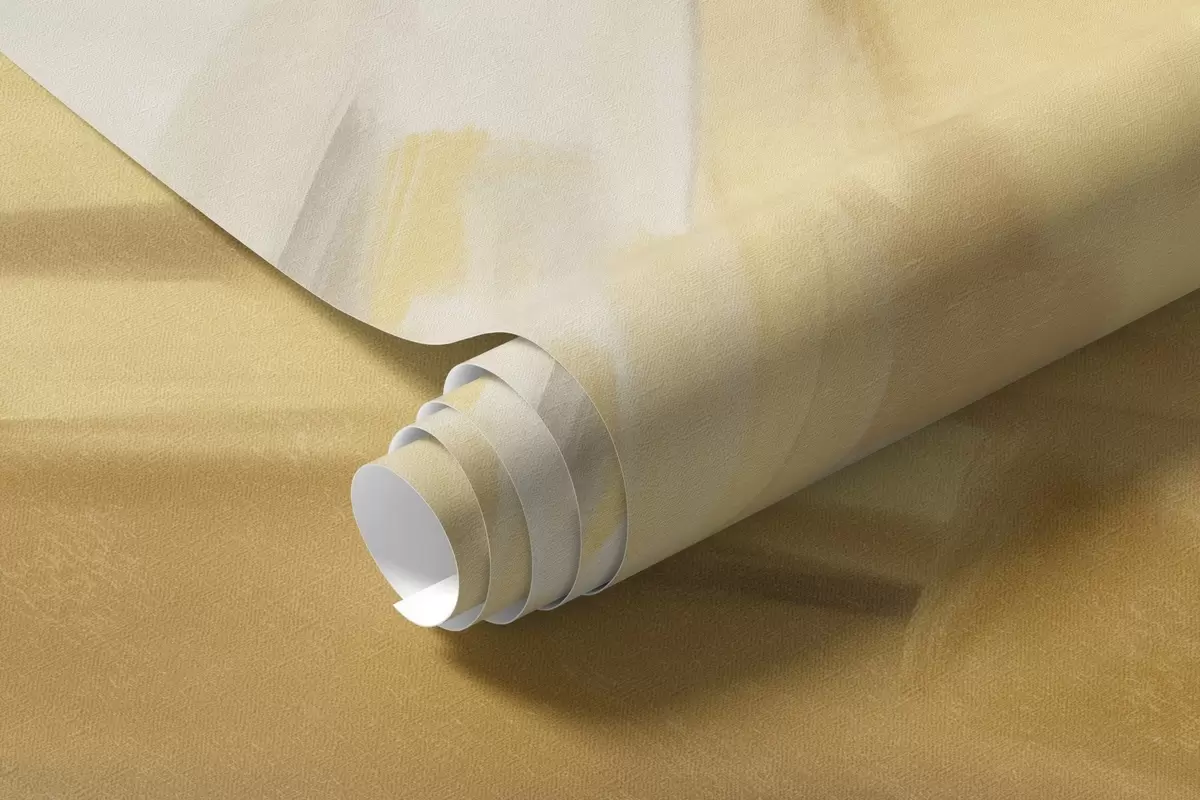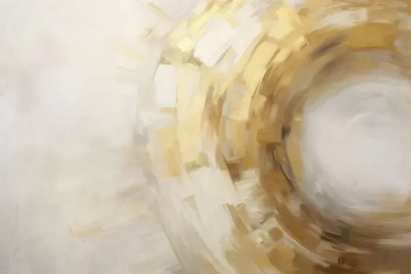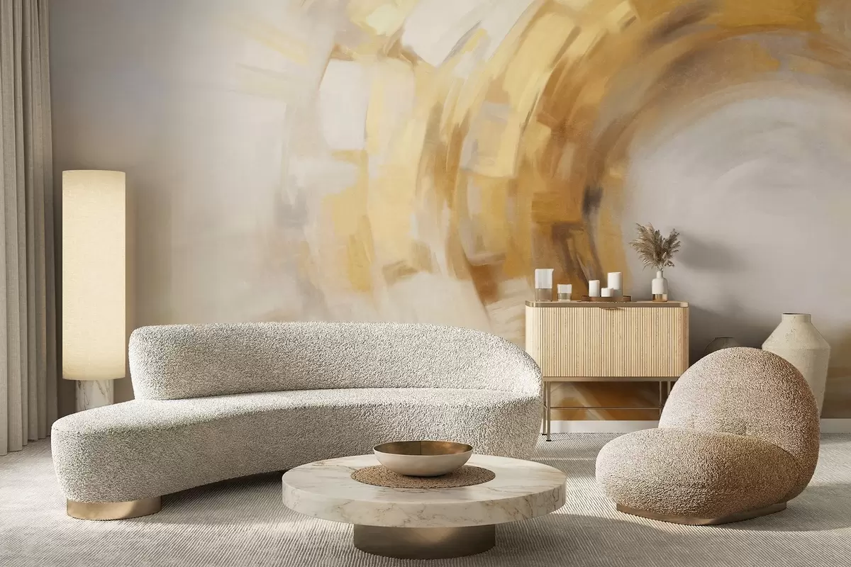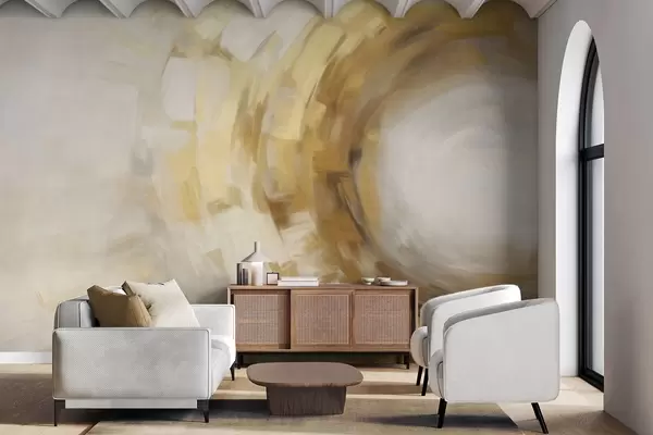 Peintures murales Imitation de peinture abstraite avec des coups de pinceau texturés circulaires en jaune et blanc, créant une impression de mouvement. Nr. w09558