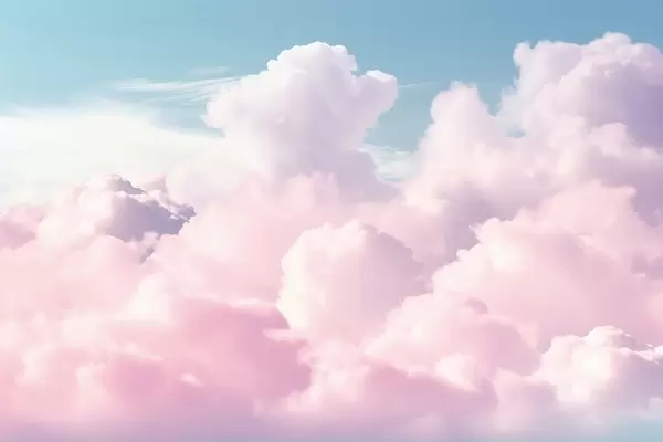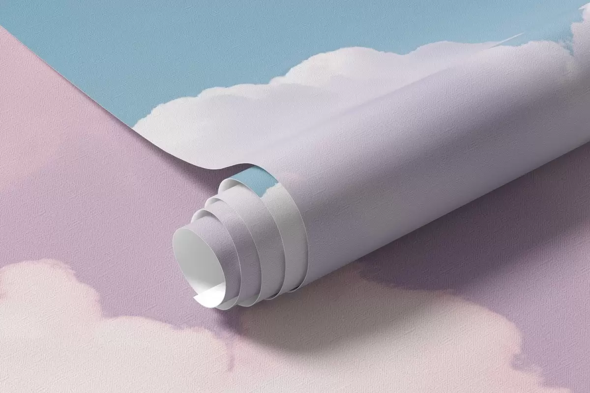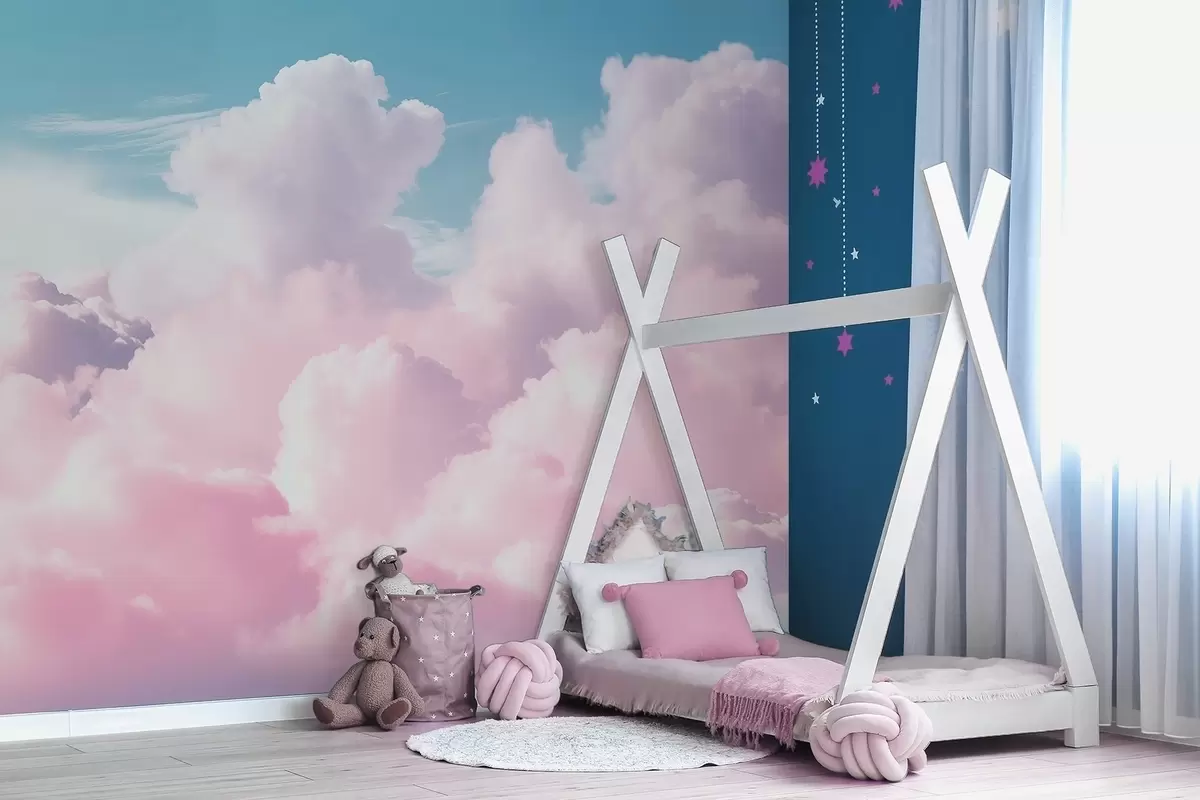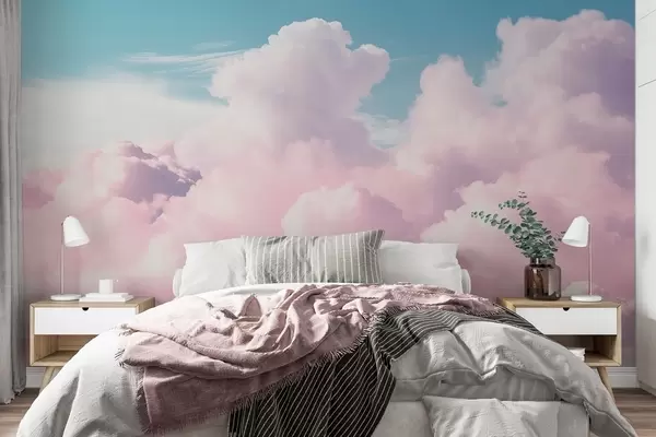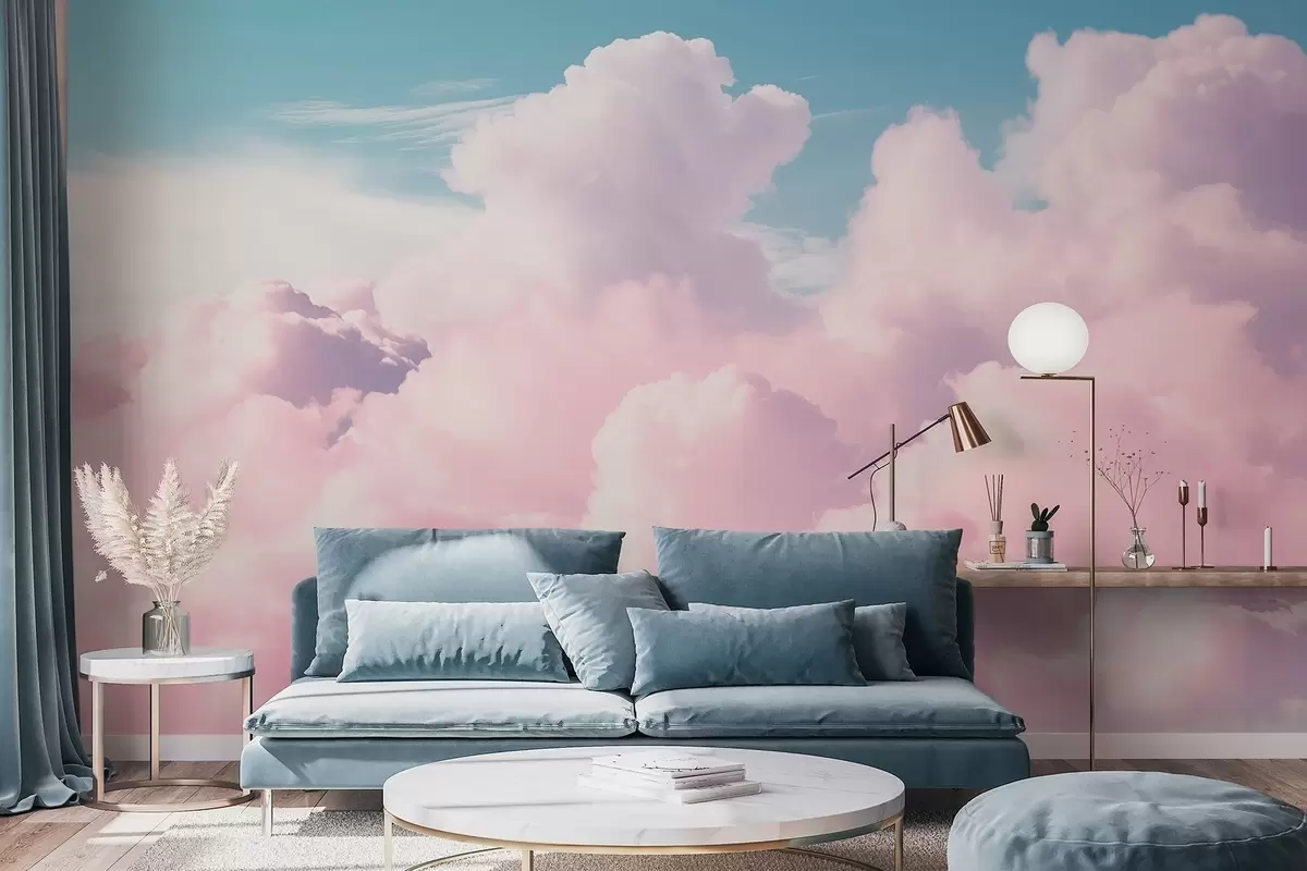 Peintures murales Des nuages roses doux et aériens dans un ciel bleu Nr. w09569
