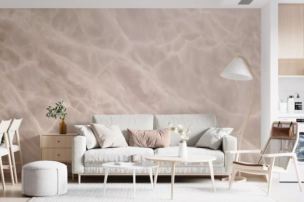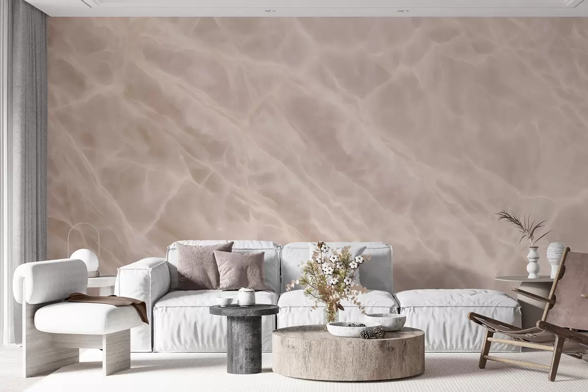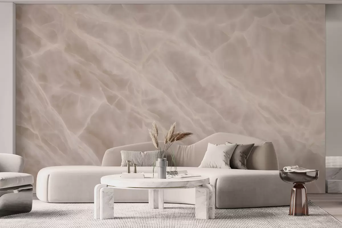 Peintures murales Élégante œuvre d'art abstraite dans une palette beige avec une imitation marbre Nr. w09684