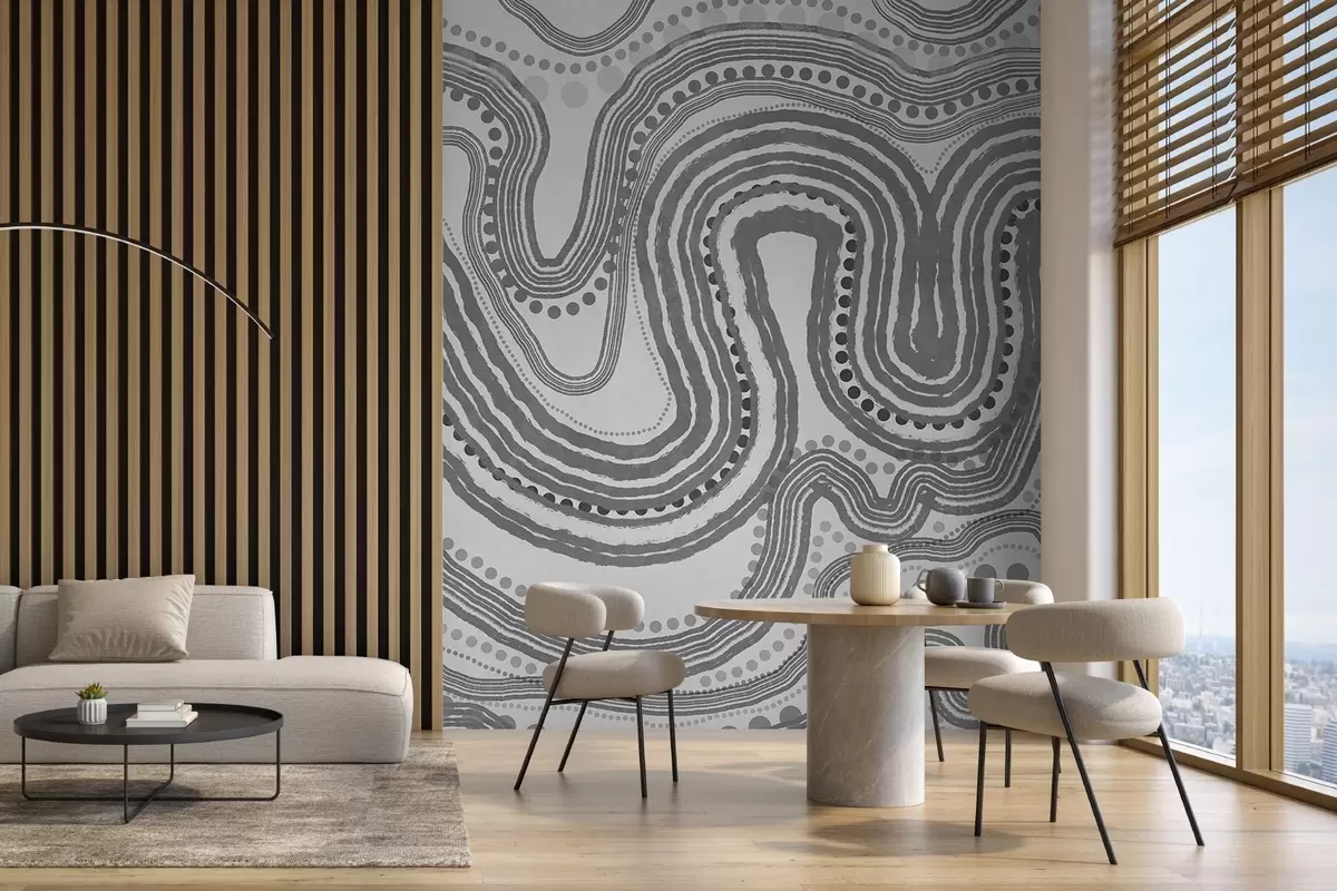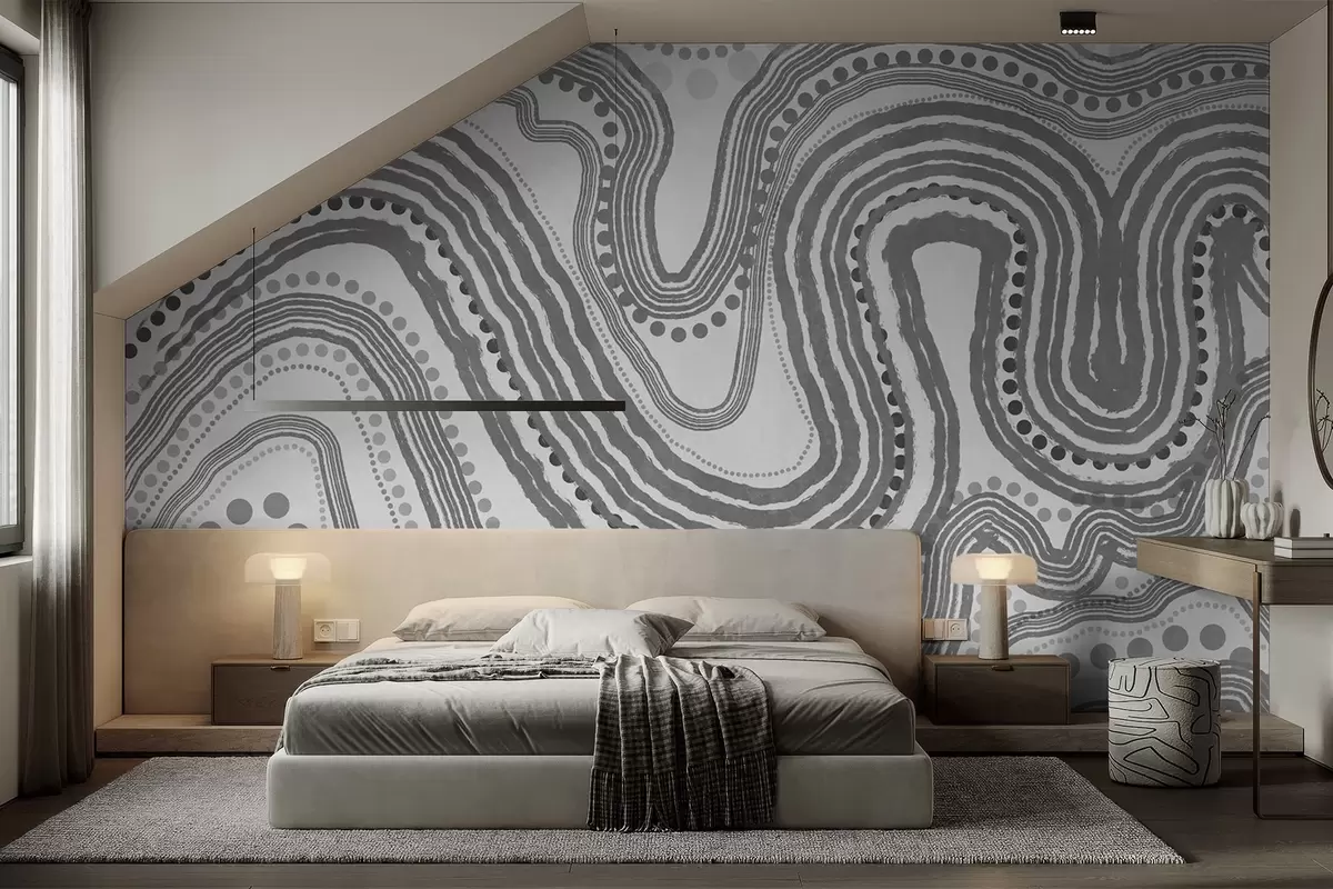 Peintures murales Lignes ondulées et points abstraits gris foncé, art moderne texturé Nr. w09747v2