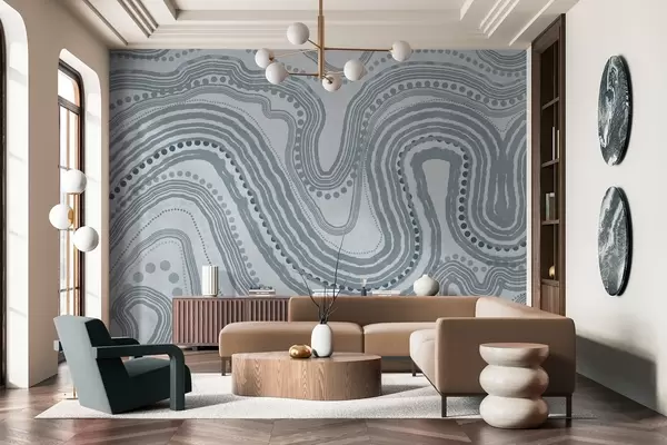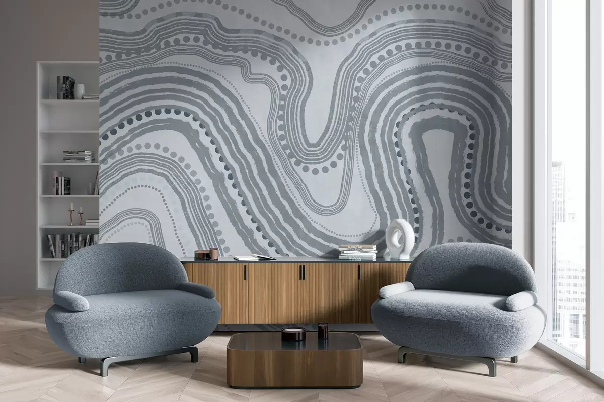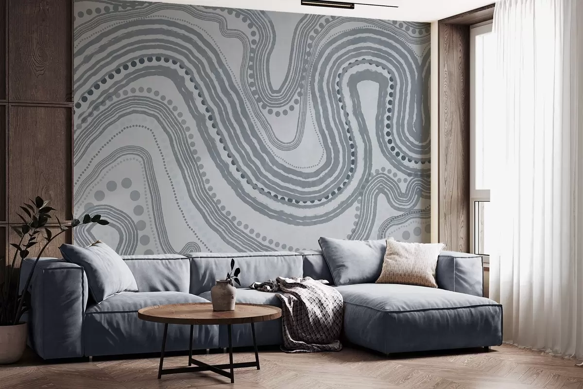 Peintures murales Lignes ondulées et points bleus abstraits, art moderne texturé Nr. w09747v3