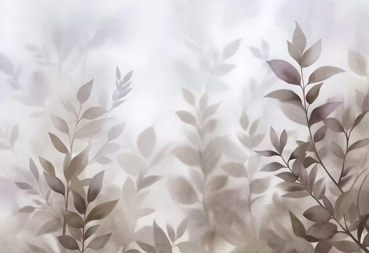 Peintures murales Branches délicates avec des feuilles brun et beige discrets, style aquarelle, art texturé Nr. w09750