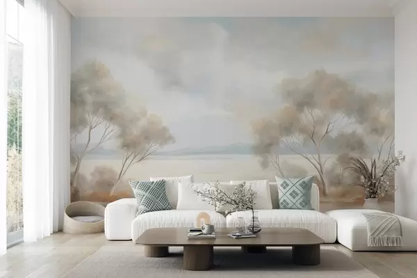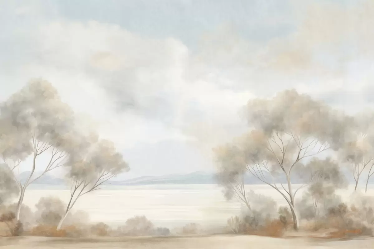 Peintures murales Une peinture de paysage texturée représentant des arbres sous un ciel nuageux Nr. w09753
