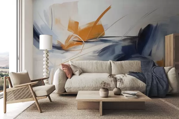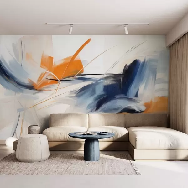 Peintures murales Style de peinture abstraite avec des coups de pinceau texturés orange et bleus Nr. w09755