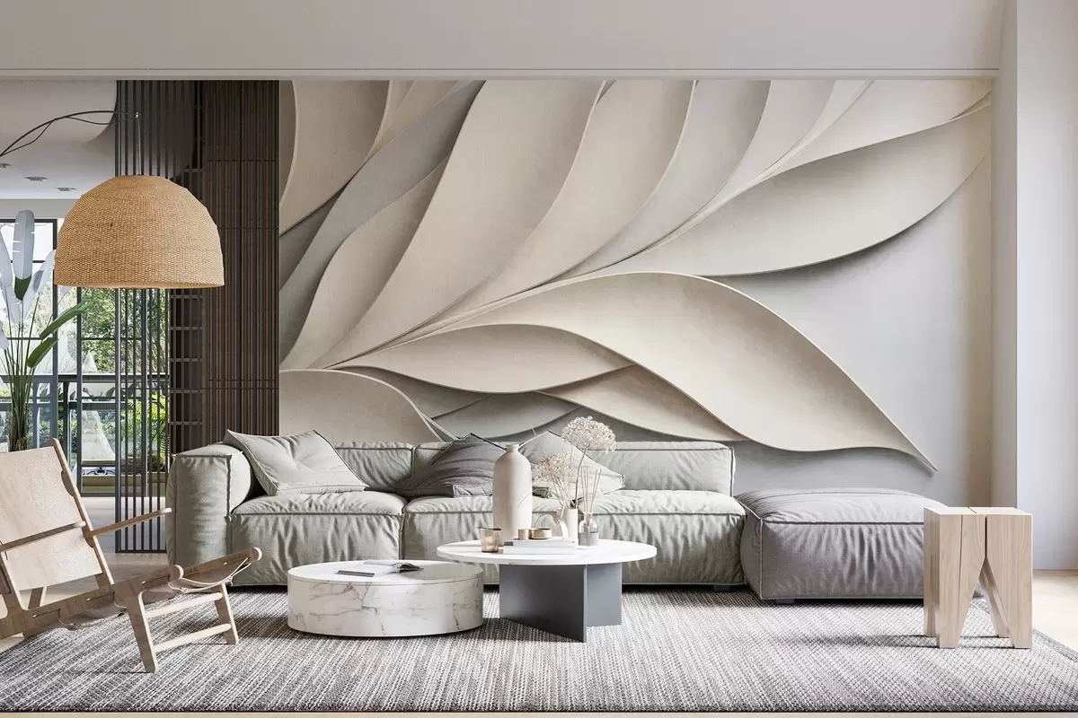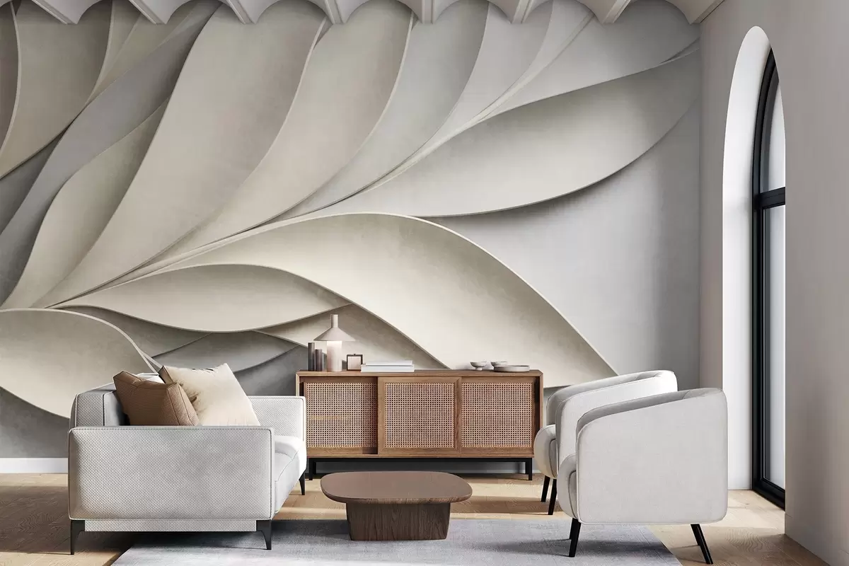 Peintures murales Feuilles abstraites en beige et gris, art moderne texturé Nr. w09769