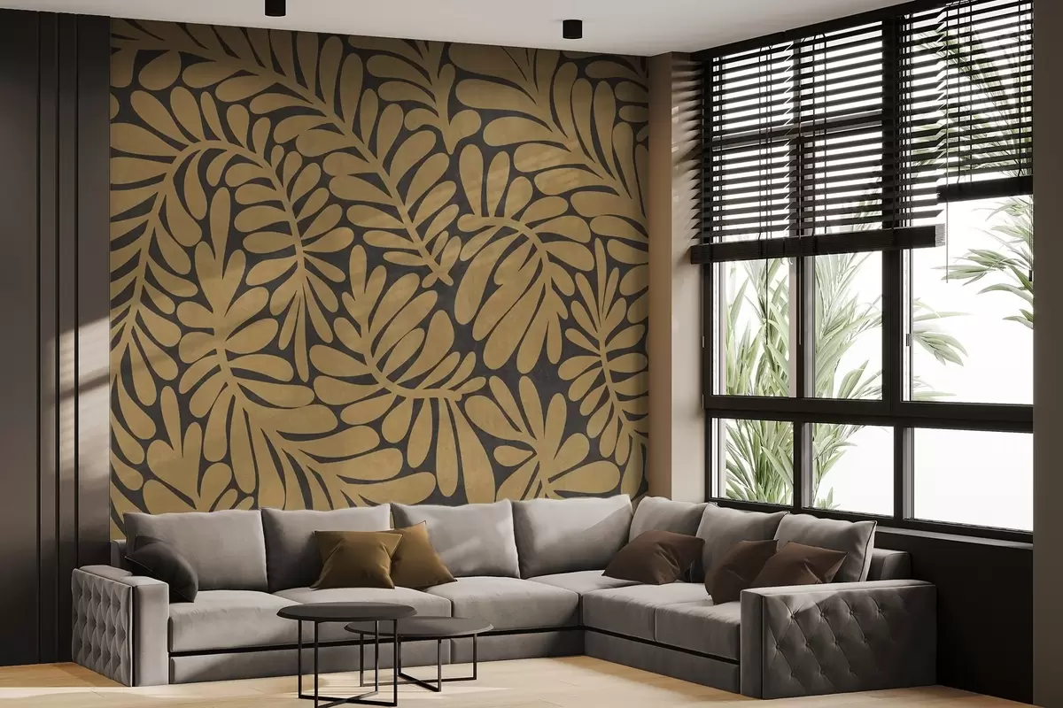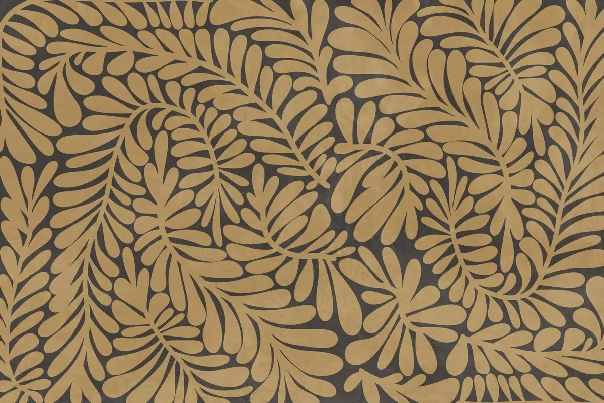 Peintures murales Feuilles jaune moutarde stylisées sur fond gris foncé, illustration texturée Nr. w09775