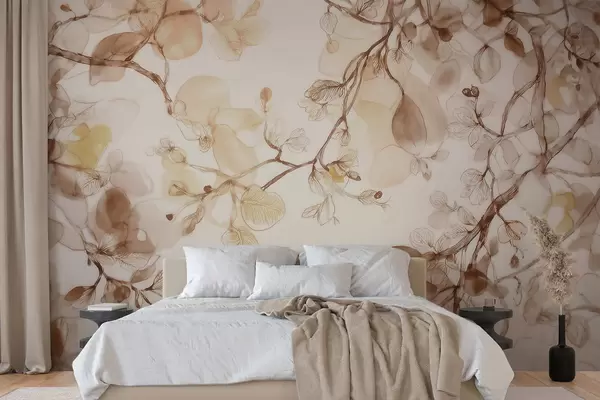 Peintures murales Des branches aériennes suspendues dans des tons beiges, dans un style aquarelle Nr. w09795
