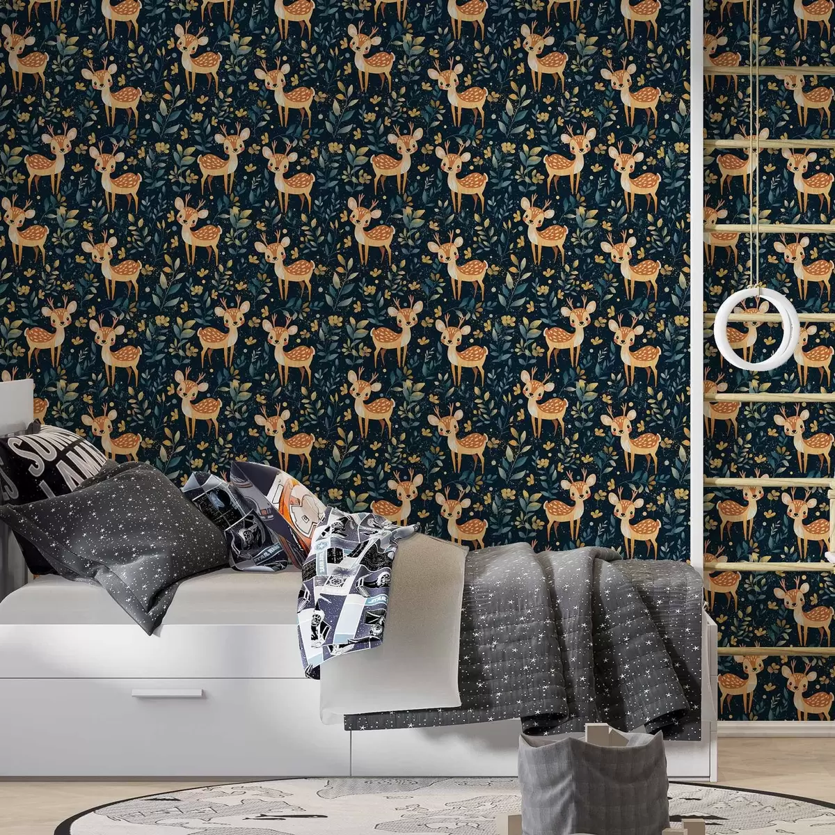Papiers peints Fauve dans une forêt sombre avec des feuilles jaunes Nr. a00124