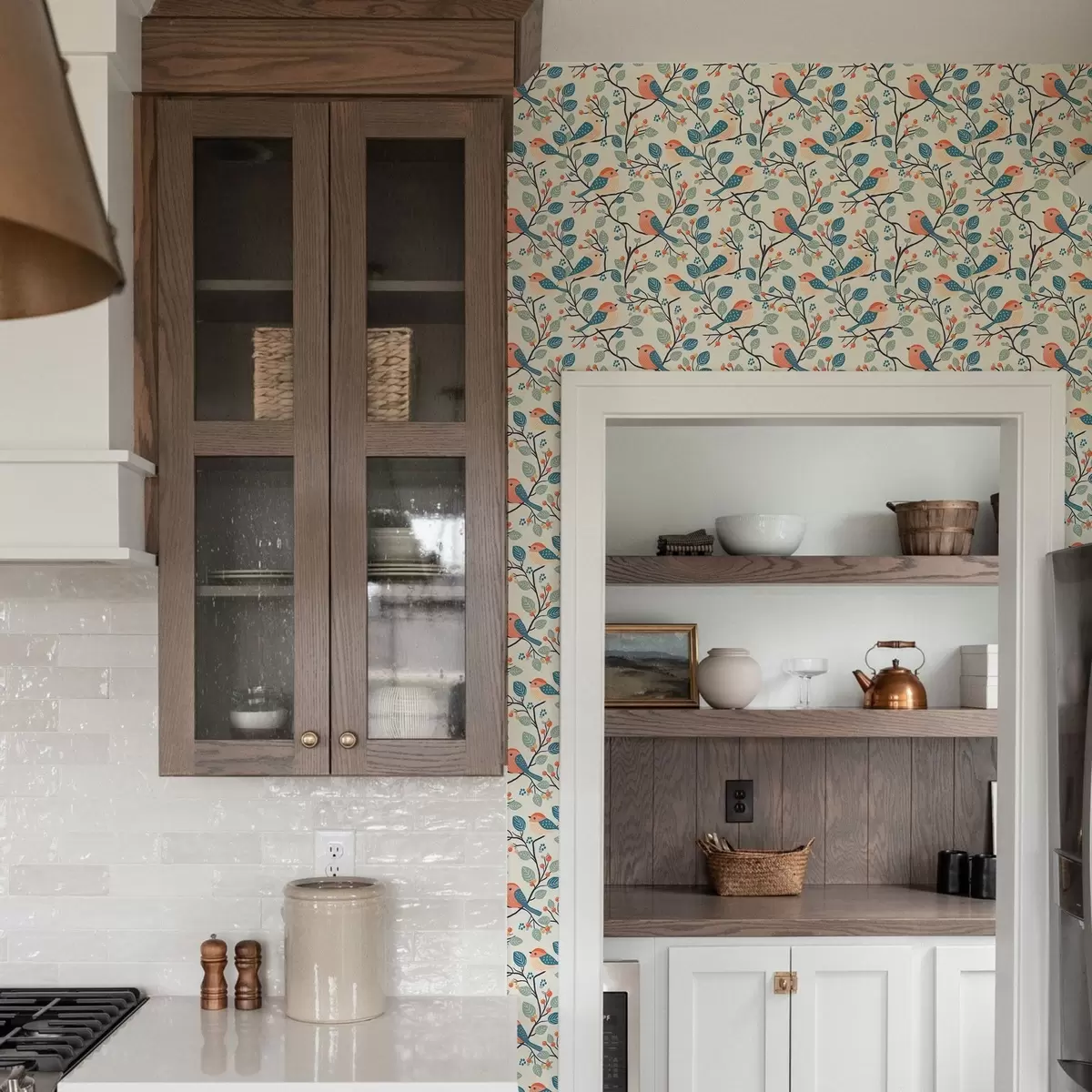 Papiers peints Oiseaux sur les branches et baies dans des couleurs chaudes Nr. a00128v1
